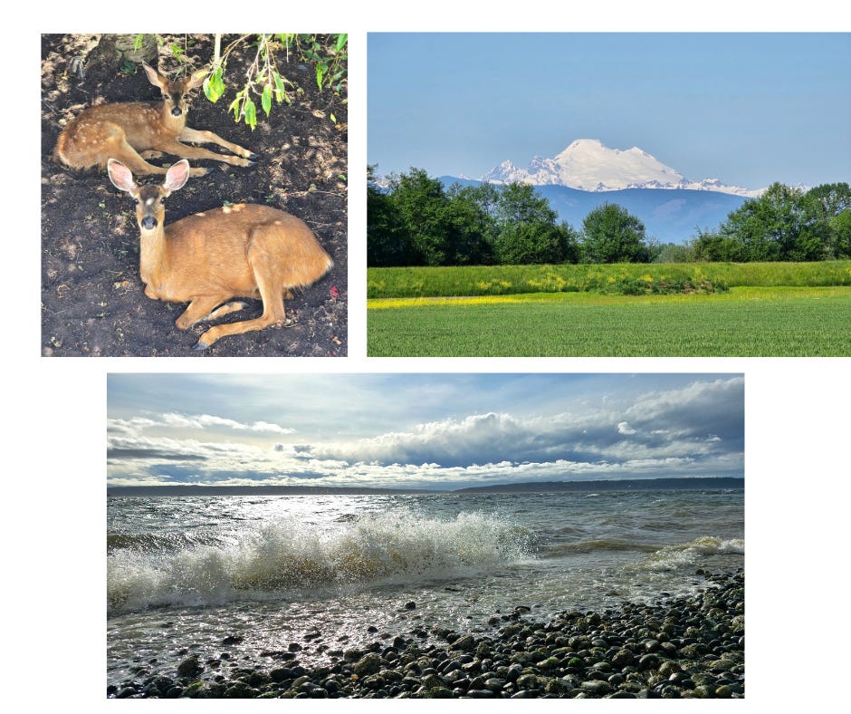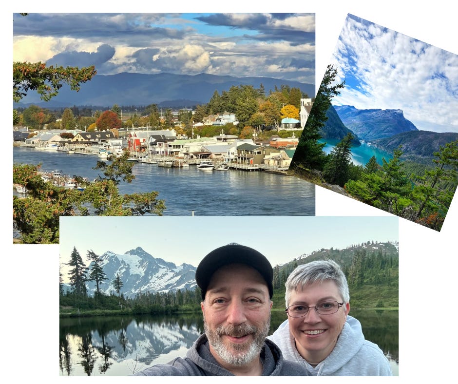 I’ve called eight states home in my 50+ years going around the sun and Washington is my favorite. I am a mountain girl and from where we live now I have views of the Cascades and the Olympics. A clear day shows off Mt. Baker and Mt. Rainier! God knew this place would bring healing to our hearts and leave us in awe at His creation on a regular basis. Days off of work find us walking a stretch of beach, chasing orcas, on a forest trail, or driving up to Canada. And all two hours or less from our front door. We are so grateful to be here.